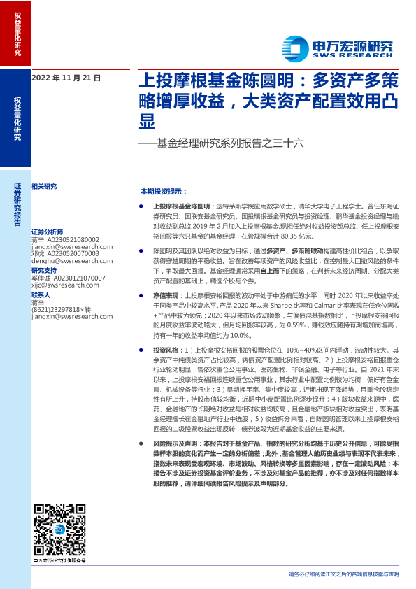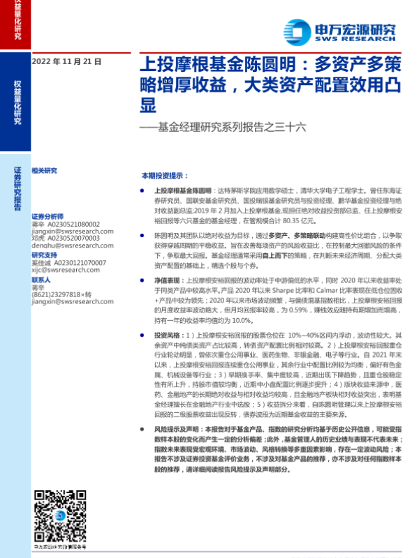 【申万宏源】【20221121】上投摩根基金陈圆明,多资产多策略增厚收益,大类资产配置效用凸显-22页