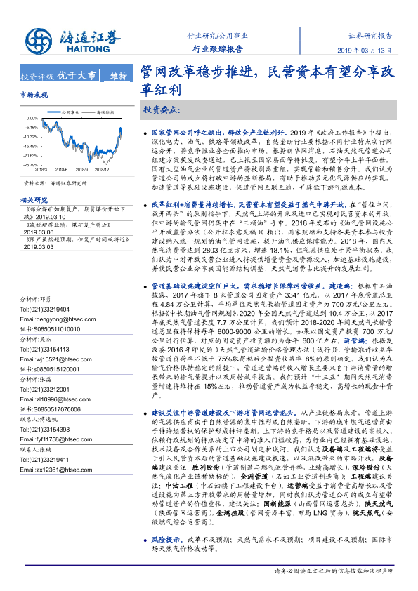 【海通证券】【20190313】公用事业行业跟踪报告:管网改革稳步推进,民营资本有望分享改革红利-2页