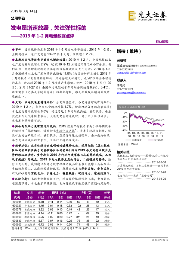 【光大证券】【20190314】2019年1-2月电量数据点评:发电量增速放缓,关注弹性标的-3页