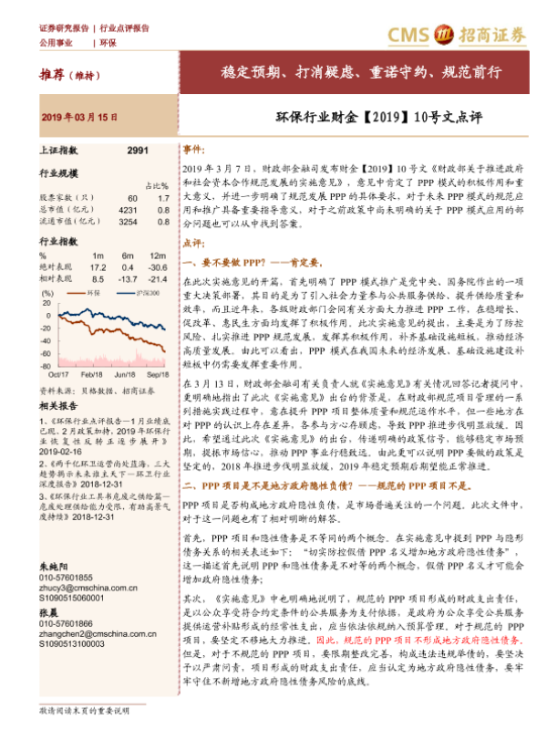 【海通证券】【20190315】环保行业财金【2019】10号文点评:稳定预期、打消疑虑、重诺守约、规范前行-5页
