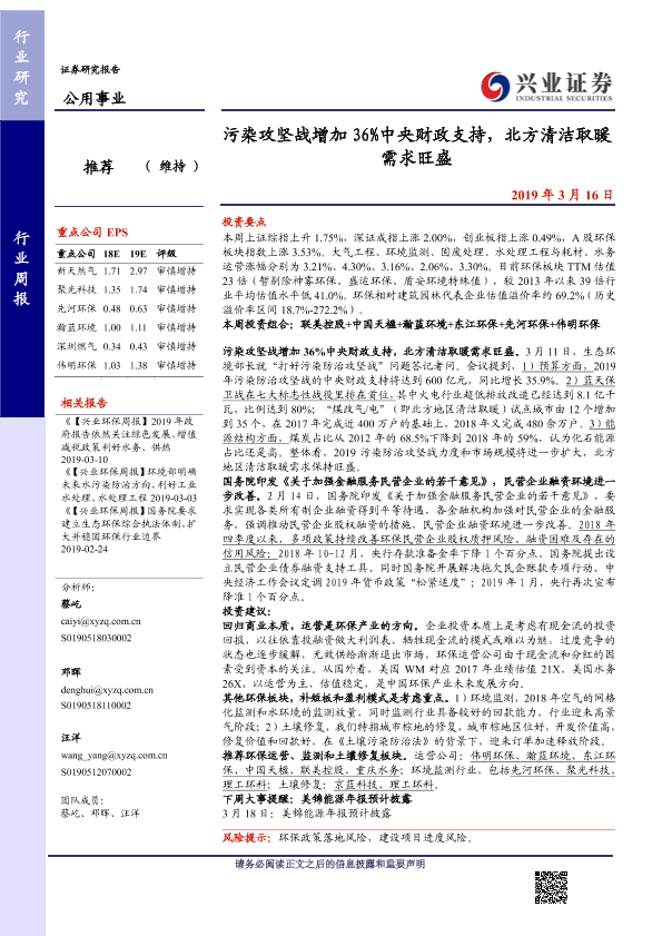 【兴业证券】【20190316】污染攻坚战增加36%中央财政支持,北方清洁取暖需求旺盛-10页