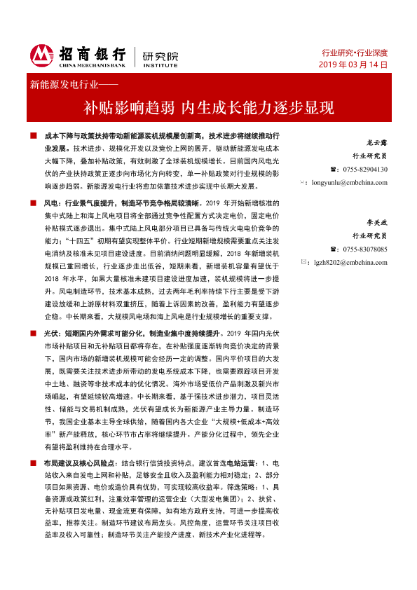 【招商银行】【20190314】新能源发电行业深度研究:补贴影响趋弱 内生成长能力逐步显现-31页