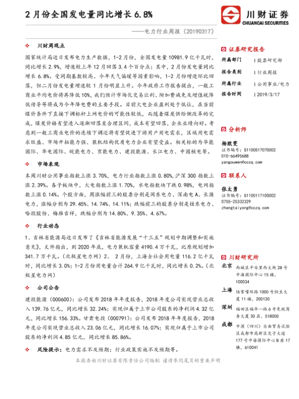 【川财证券】【20190317】2月份全国发电量同比增长6.8%-10页