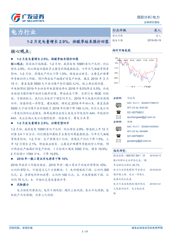 【广发证券】【20190319】1-2月发电量增长2.9%,供暖季结束煤价回落-17页