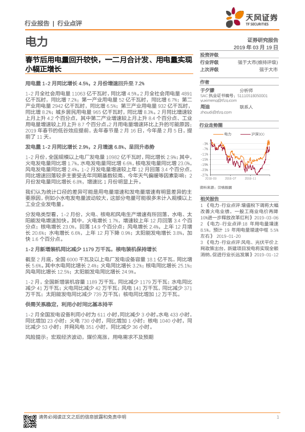 【天风证券】【20190319】春节后用电量回升较快,一二月合计发、用电量实现小幅正增长-10页