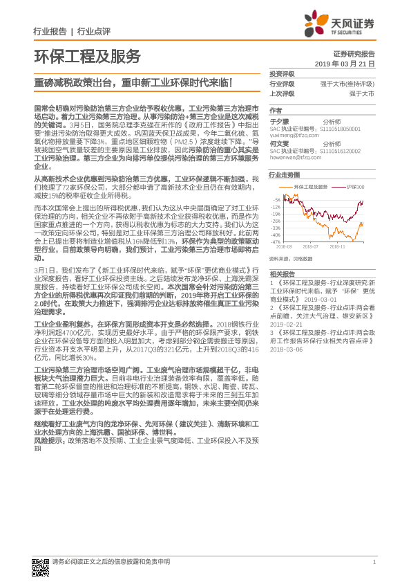 【天风证券】【20190321】重磅减税政策出台,重申新工业环保时代来临-14页