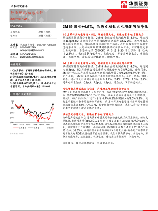 【华泰证券】【20190322】2M19用电+4.5%,沿海走弱致火电增速明显降低-6页