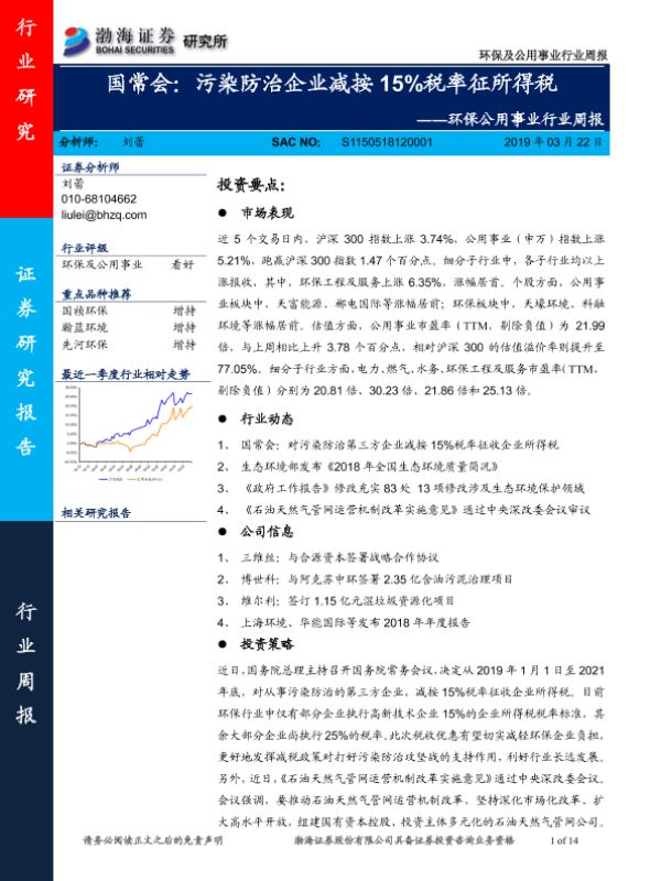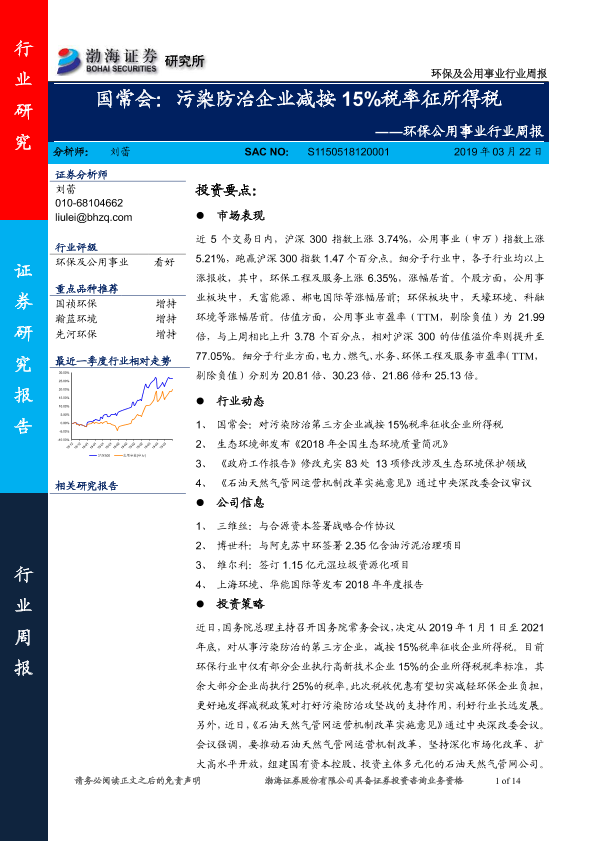 【渤海证券】【20190322】环保公用事业行业周报-14页