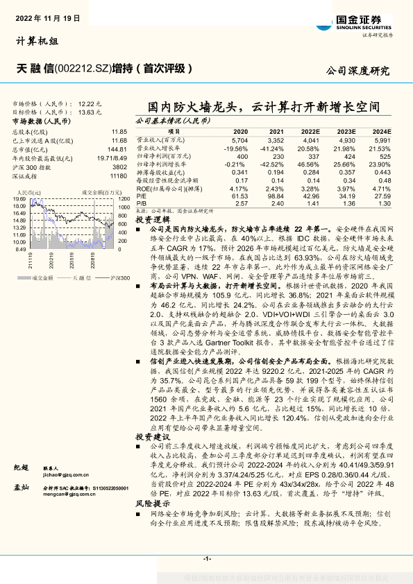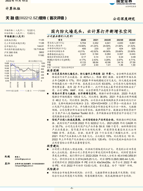 【国金证券】【20221119】天融信:国内防火墙龙头,云计算打开新增长空间-19页