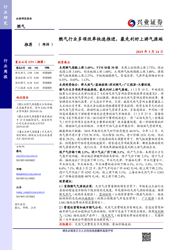 【兴业证券】【20190324】燃气行业多项改革快速推进,最先利好上游气源端-10页