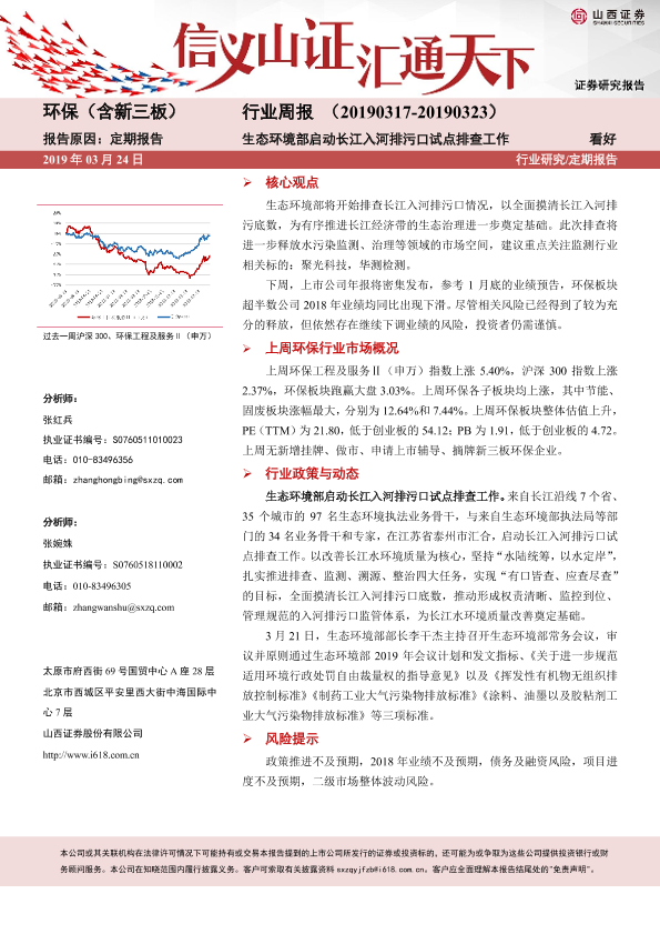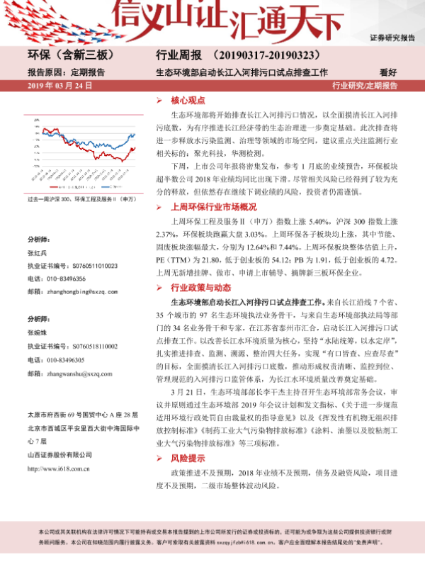 【山西证券】【20190324】环保(含新三板)行业周报:生态环境部启动长江入河排污口试点排查工作-15页