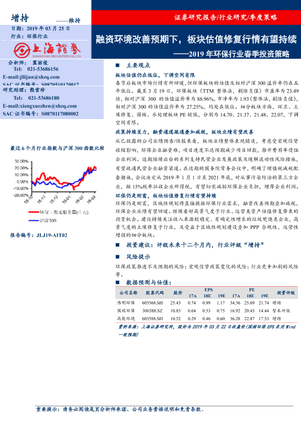 估值修复 投资策略 政策支持 环保行业 融资环境