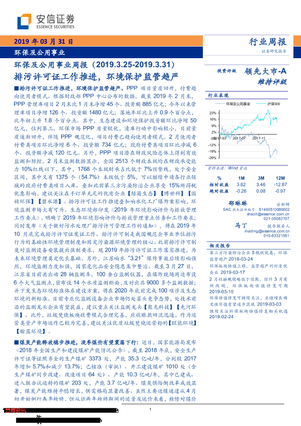 【安信证券】【20190331】环保及公用事业周报:排污许可证工作推进,环境保护监管趋严-16页