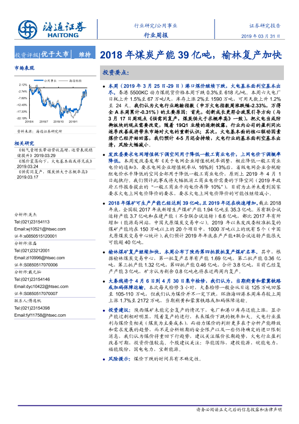 公用事业 榆林复产 火电行业 煤价预测 煤炭产能