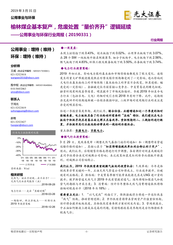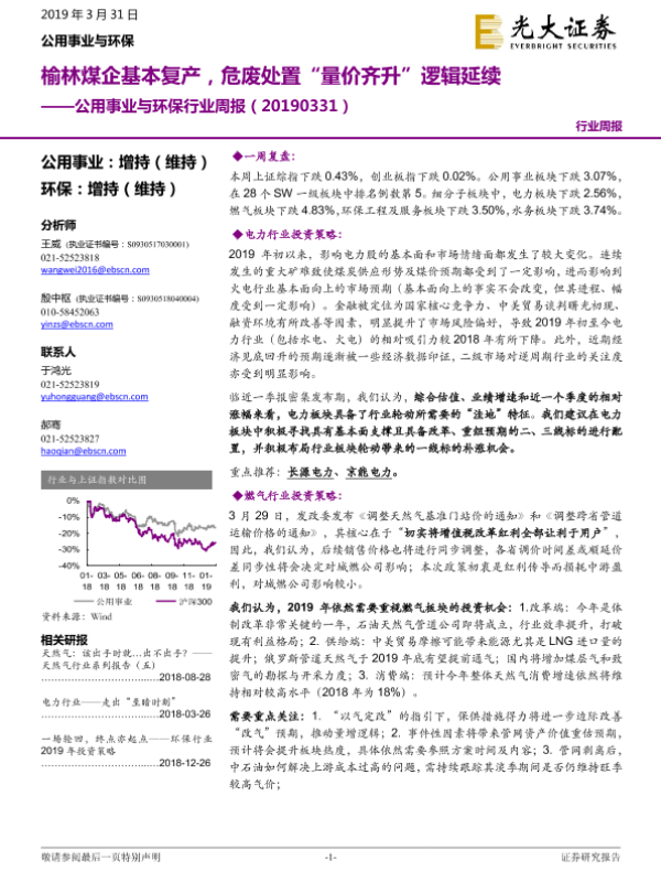 【光大证券】【20190331】公用事业与环保行业周报:榆林煤企基本复产,危废处置“量价齐升”逻辑延续-25页