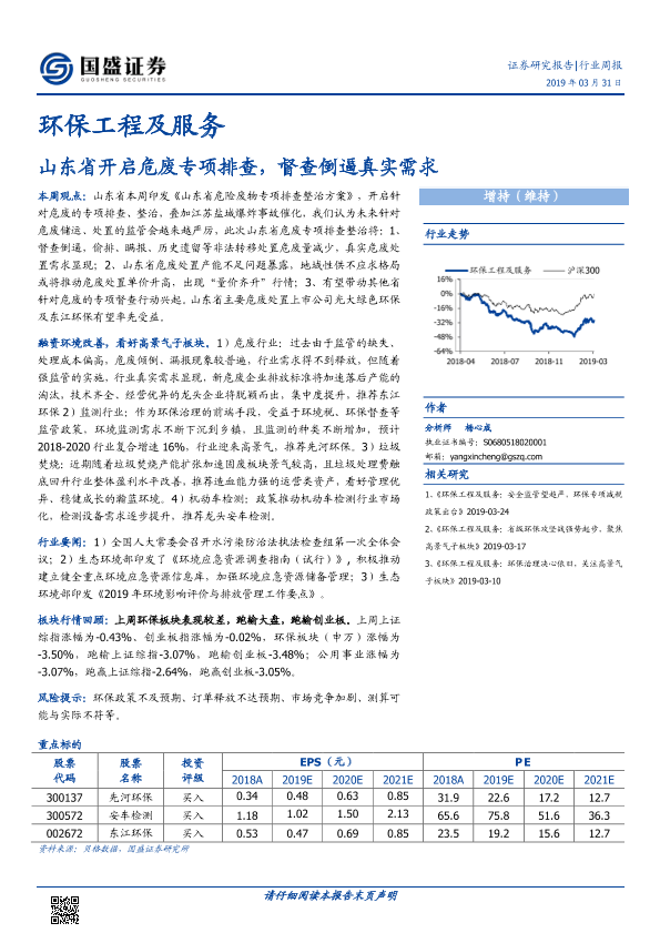 【国盛证券】【20190331】环保工程及服务行业周报:山东省开启危废专项排查,督查倒逼真实需求-12页