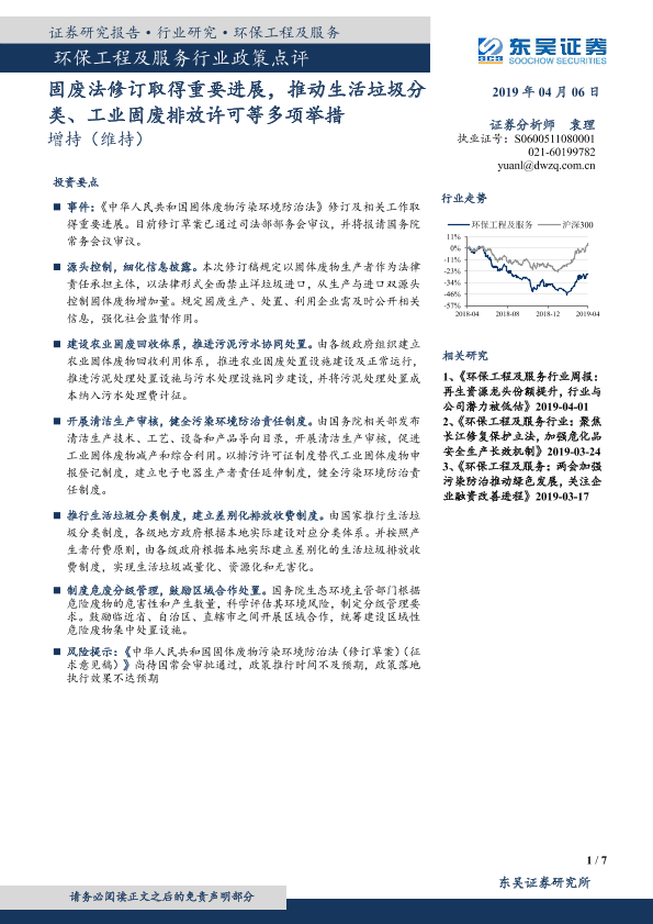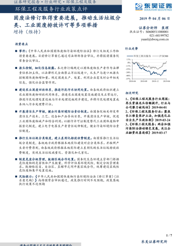 【东吴证券】【20190406】环保工程及服务行业政策点评:固废法修订取得重要进展-7页