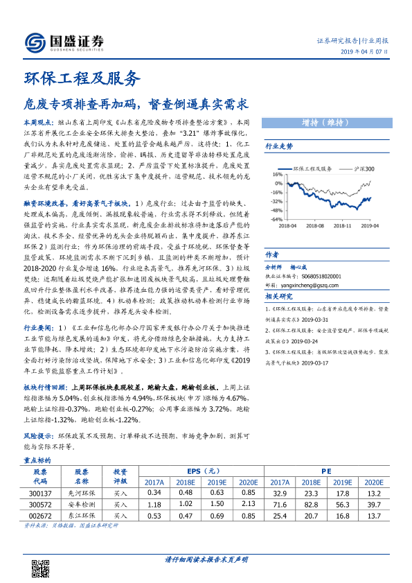 【国盛证券】【20190407】环保工程及服务行业周报:危废专项排查再加码,督查倒逼真实需求-11页