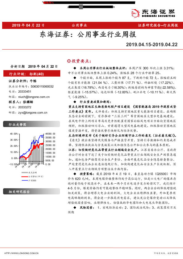 【东海证券】【20190422】公用事业行业周报-6页