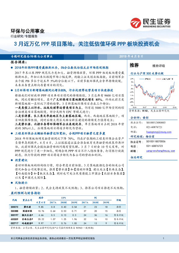 【民生证券】【20190408】3月近万亿PPP项目落地,关注低估值环保PPP板块投资机会-15页