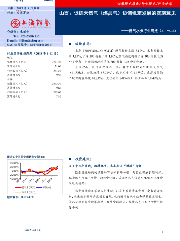 【上海证券】【20190408】燃气水务行业周报:山西:促进天然气(煤层气)协调稳定发展的实施意见-8页