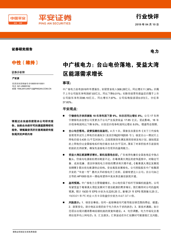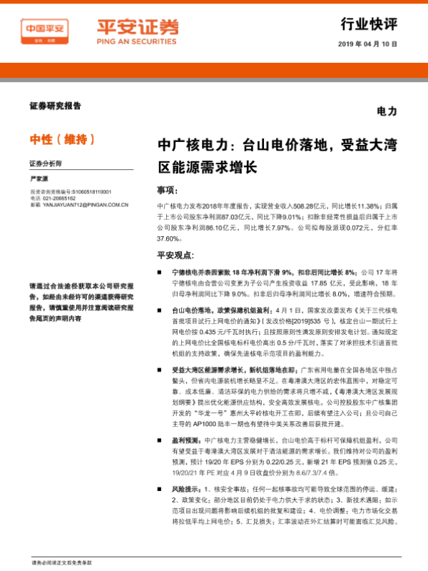 【平安证券】【20190410】中广核电力:台山电价落地,受益大湾区能源需求增长-3页