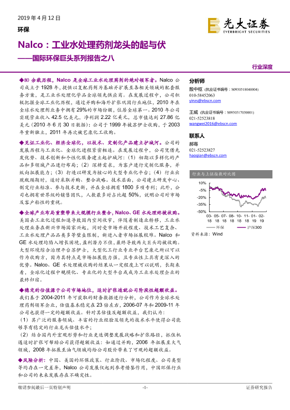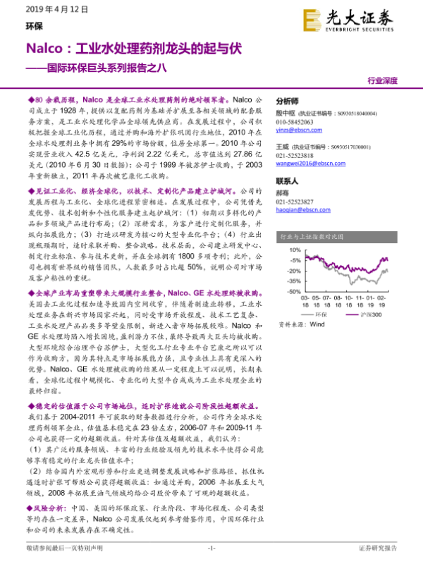 【光大证券】【20190412】Nalco:工业水处理药剂龙头的起与伏-29页