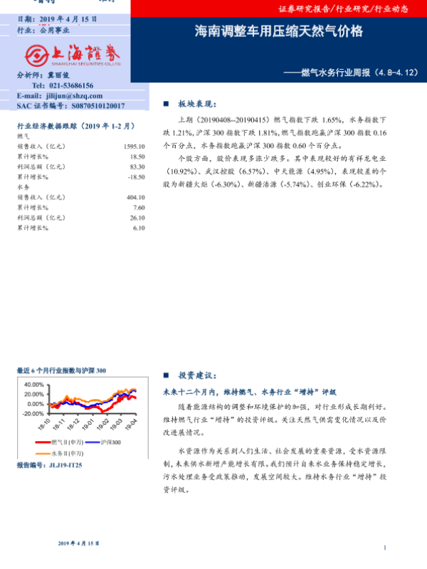 【上海证券】【20190415】燃气水务行业周报:海南调整车用压缩天然气价格-7页