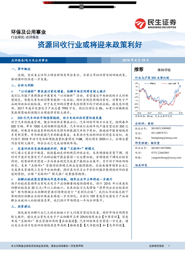 【民生证券】【20190418】环保及公用事业点评报告:资源回收行业或将迎来政策利好-4页