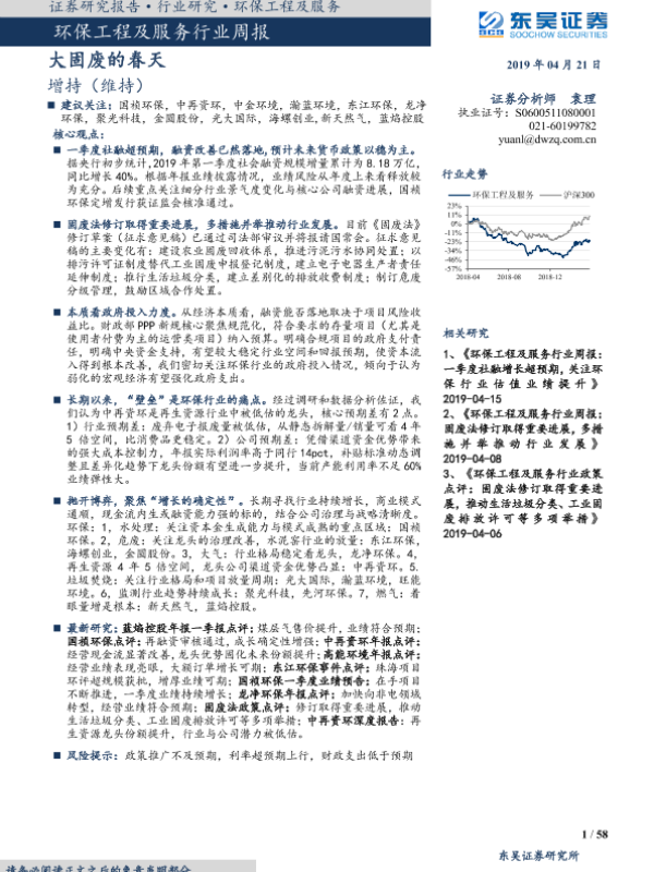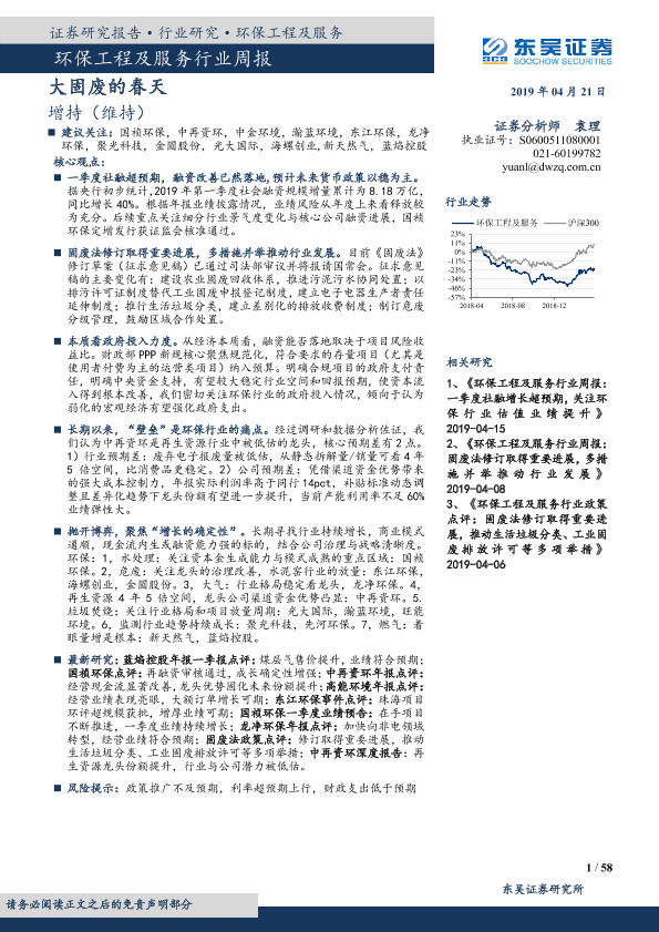 【东吴证券】【20190421】环保工程及服务行业周报:大固废的春天-58页