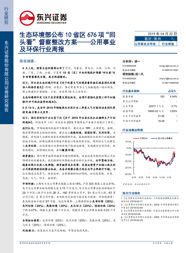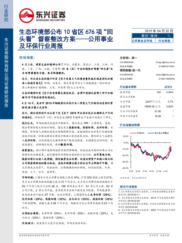 【东兴证券】【20190422】公用事业及环保行业周报:生态环境部公布10省区676项“回头看”督察整改方案-7页