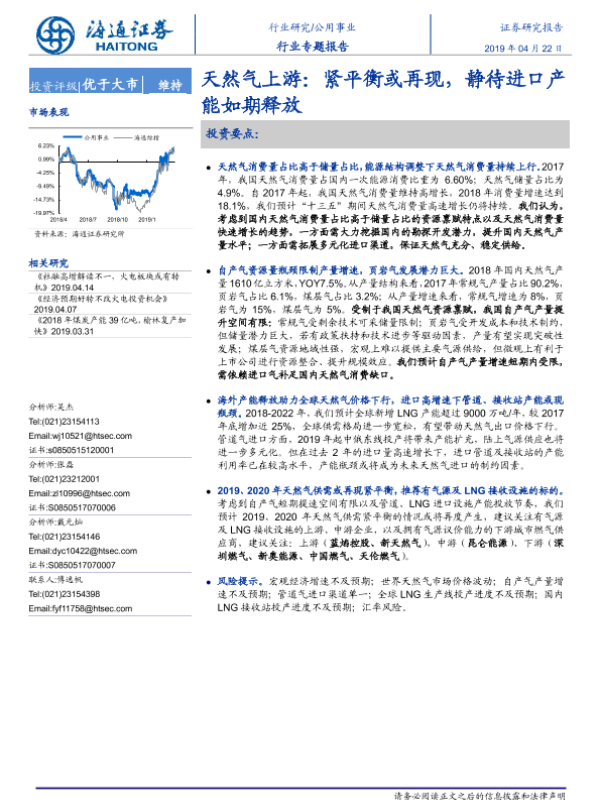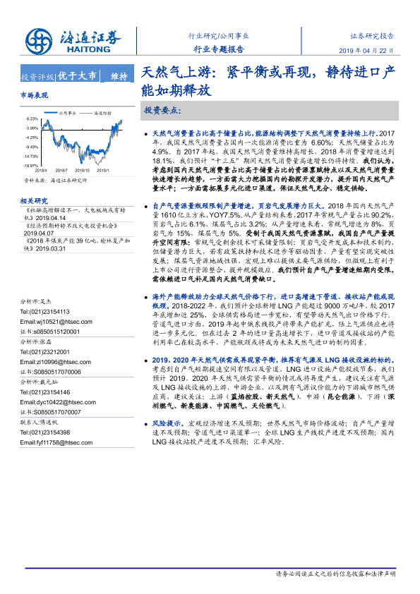 【海通证券】【20190422】公用事业行业专题报告:天然气上游:紧平衡或再现,静待进口产能如期释放-31页