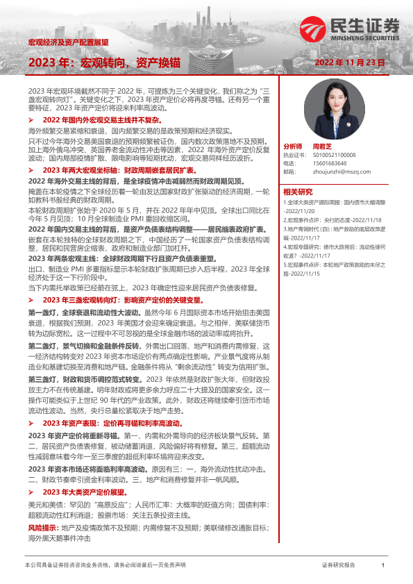 【民生证券】【20221123】宏观经济及资产配置展望:2023年,宏观转向,资产换锚-24页