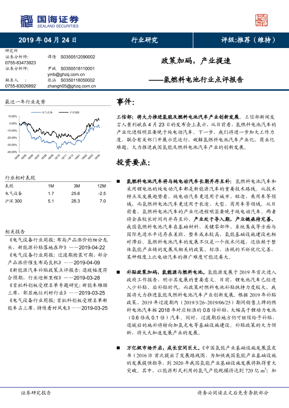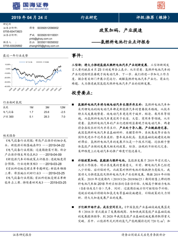 【国海证券】【20190424】氢燃料电池行业点评报告:政策加码,产业提速-4页