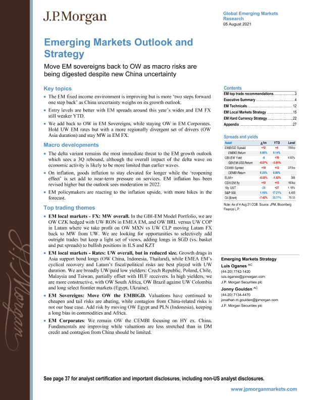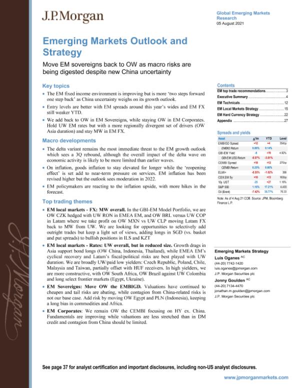 【J.P. Morgan】【20210805】新兴市场投资策略:新兴市场主权债务重新回到单程,因为尽管中国出现了新的不确定性,但宏观风险正在被消化-42页
