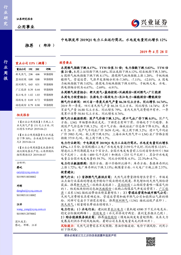 兴业证券 电力热力燃气水生产 2019年 PDF 881.52 KB