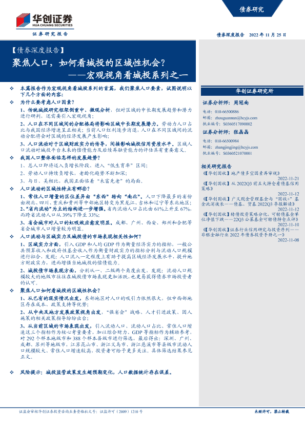 【华创证券】【20221125】宏观视角看城投系列之一:聚焦人口,如何看城投的区域性机会?-26页