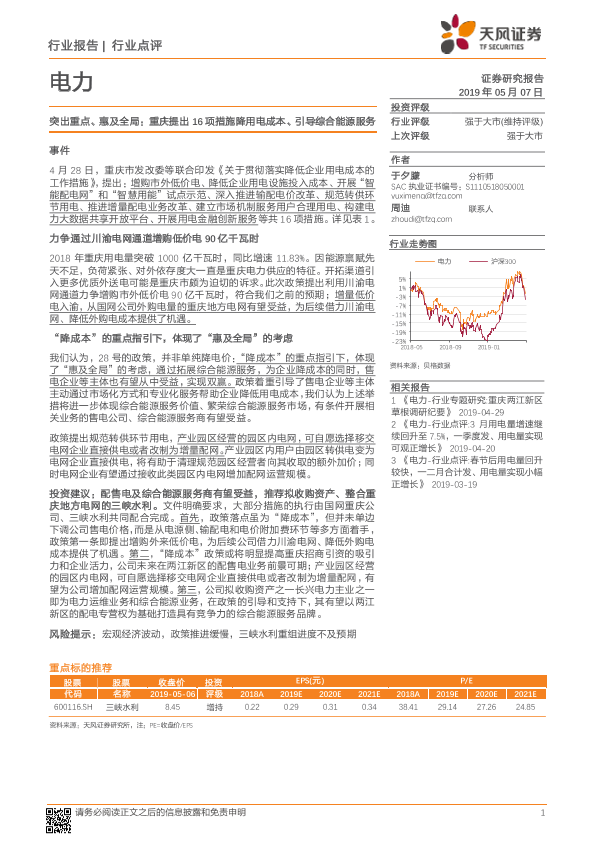 【天风证券】【20190507】突出重点、惠及全局:重庆提出16项措施降用电成本、引导综合能源服务-4页