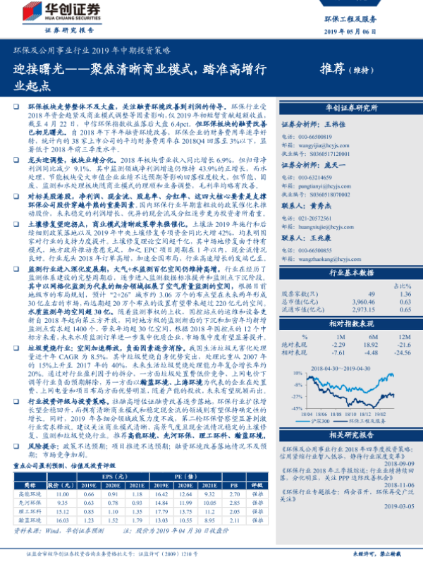 【华创证券】【20190506】环保及公用事业行业中期投资策略:迎接曙光——聚焦清晰商业模式,踏准高增行业起点-37页