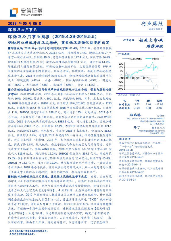 【安信证券】【20190506】环保及公用事业周报:钢铁行业超低排放正式推进,蓝天保卫战强化监督再出发-36页