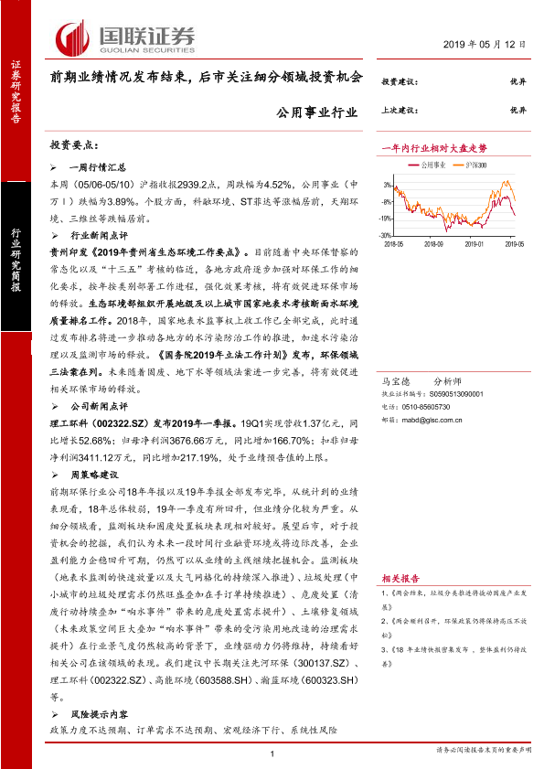 【国联证券】【20190512】前期业绩情况发布结束,后市关注细分领域投资机会-13页