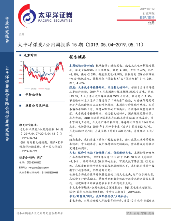 【太平洋证券】【20190512】煤炭 公用周报第15期-37页