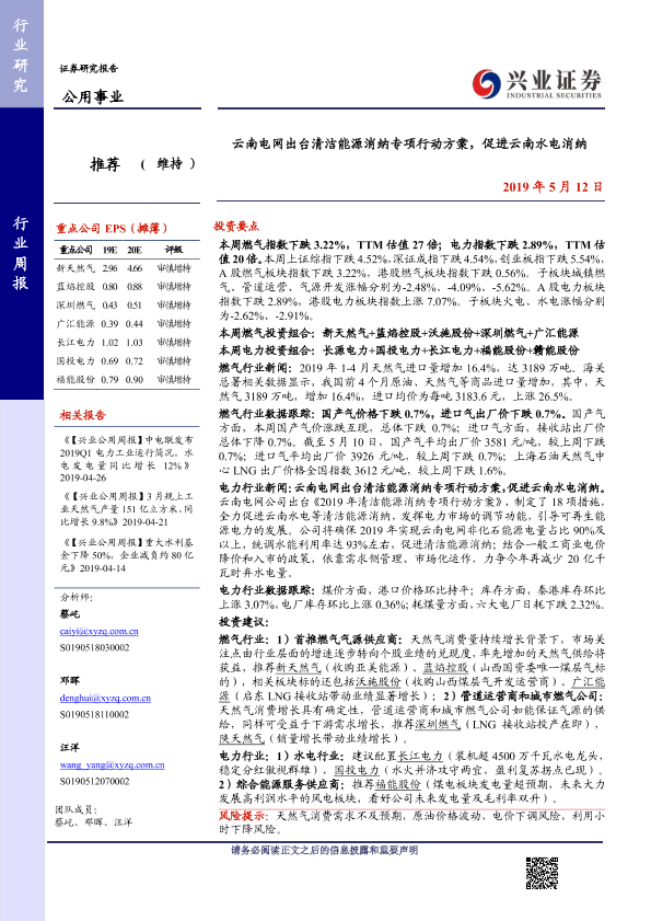 【兴业证券】【20190512】云南电网出台清洁能源消纳专项行动方案,促进云南水电消纳-15页