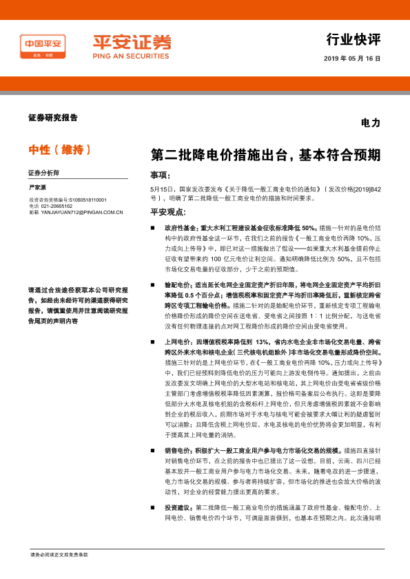 【平安证券】【20190516】第二批降电价措施出台,基本符合预期-3页