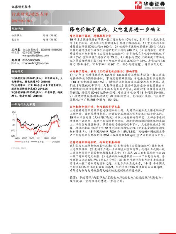 【华泰证券】【20190516】降电价靴子落地,火电复苏进一步确立-2页