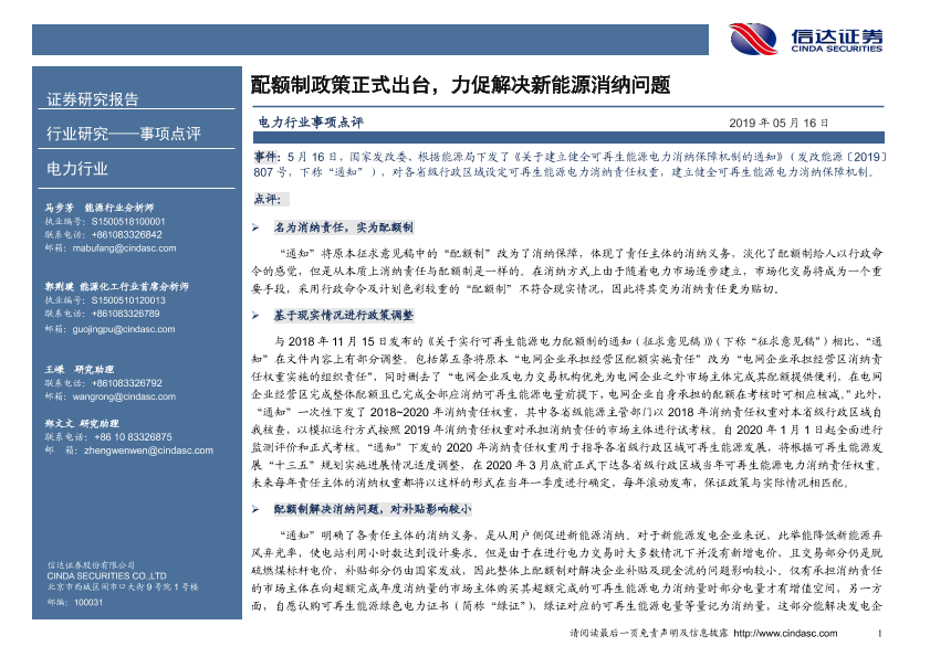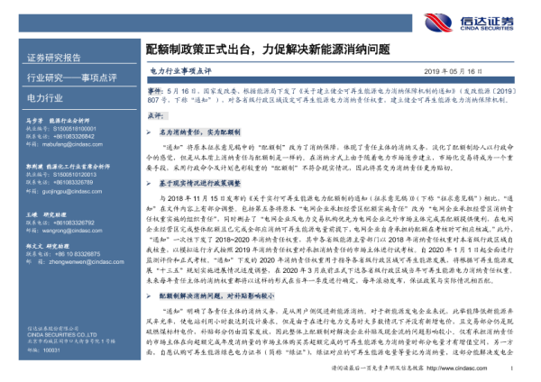 【信达证券】【20190516】配额制政策正式出台,力促解决新能源消纳问题-4页