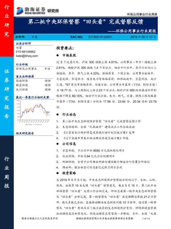 【渤海证券】【20190517】第二批中央环保督察“回头看”完成督察反馈-14页