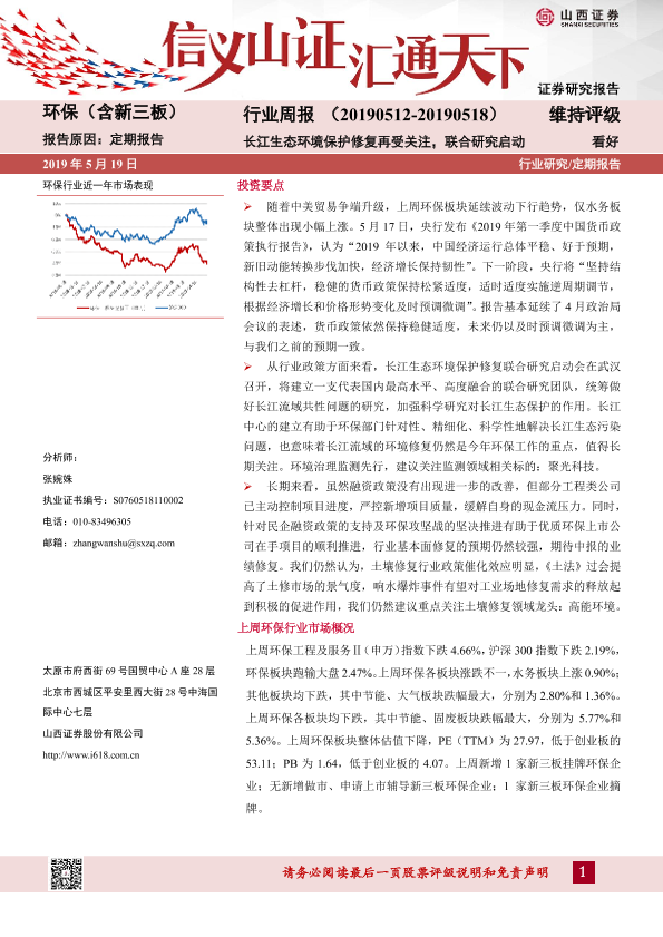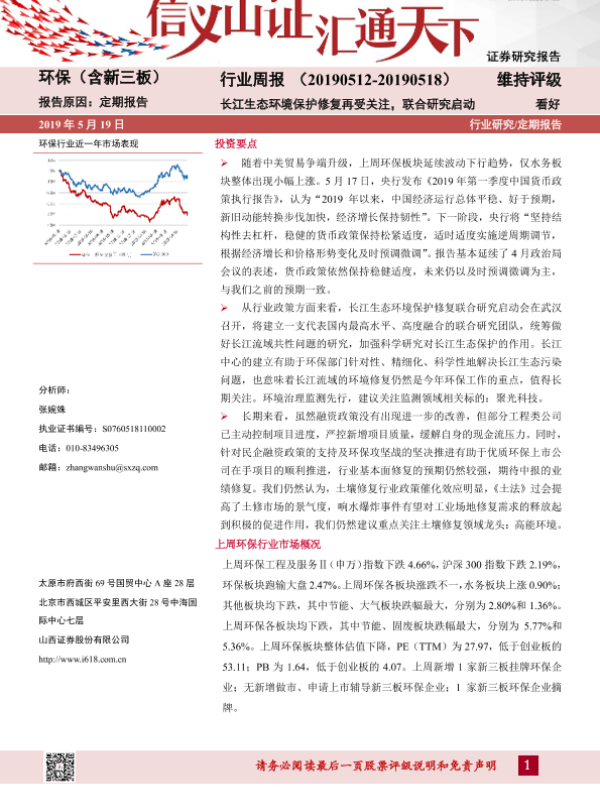 【山西证券】【20190519】环保(含新三板)行业周报:长江生态环境保护修复再受关注,联合研究启动-12页