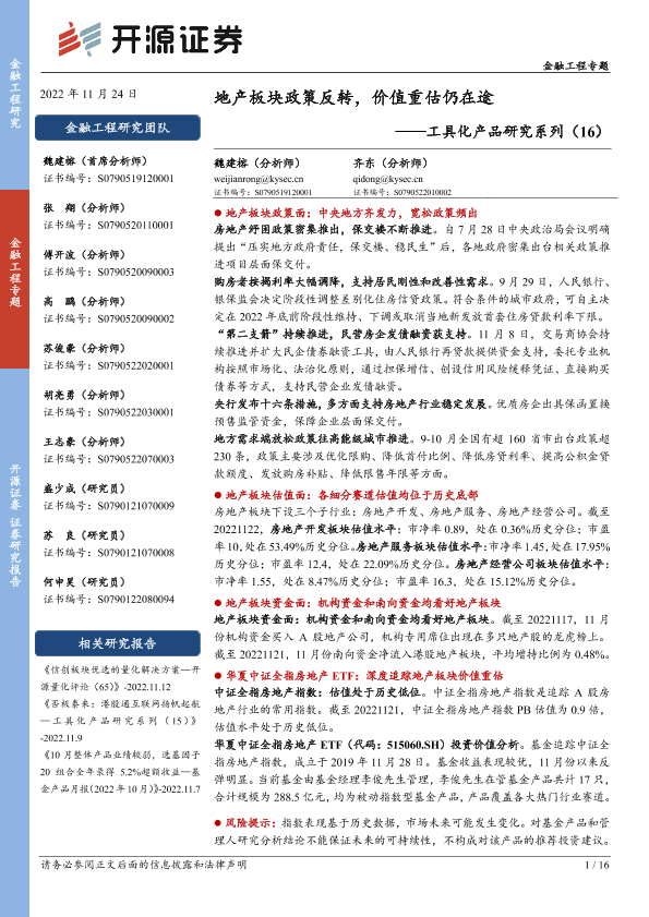 【开源证券】【20221124】工具化产品研究系列(16):地产板块政策反转,价值重估仍在途-16页