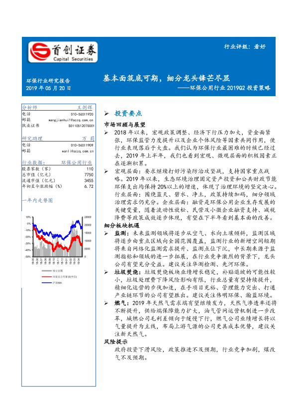 【首创证券】【20190520】环保公用行业2019Q2投资策略:基本面筑底可期,细分龙头锋芒尽显-33页